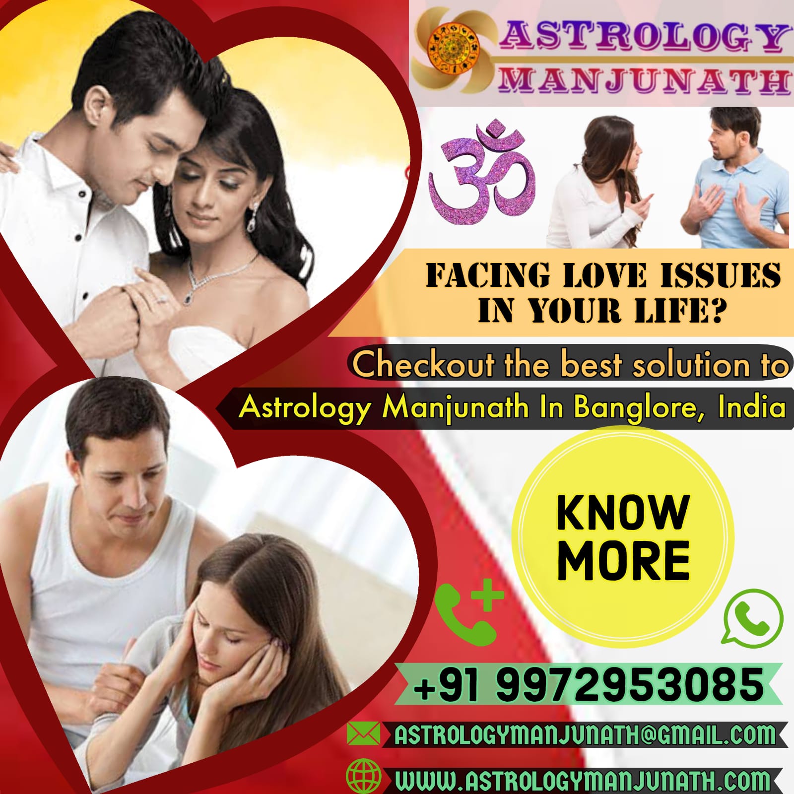 Astrologer Manjunath, a unique astrologer and the known as the mixture of Kindness and Knowledge. He is considered a master in the field of Astrology and is widely recognized differently among others as the best astrologer in India. Manjunath Astrologer has ancestral roots in this field of astrology and is booming globally due to his faith and respect that his trusted customers give him. Although making love prediction is not an easy task, only the love problem solution experts like Astrologer Manjunath can do it because it requires ultimate expertise. Astrologer Manjunath is one such astrologer in India who provides the beneficial love solution to his clients with his simple and effective astrological remedies and thus gained him popularity and is known as a ray of hope for many lives.